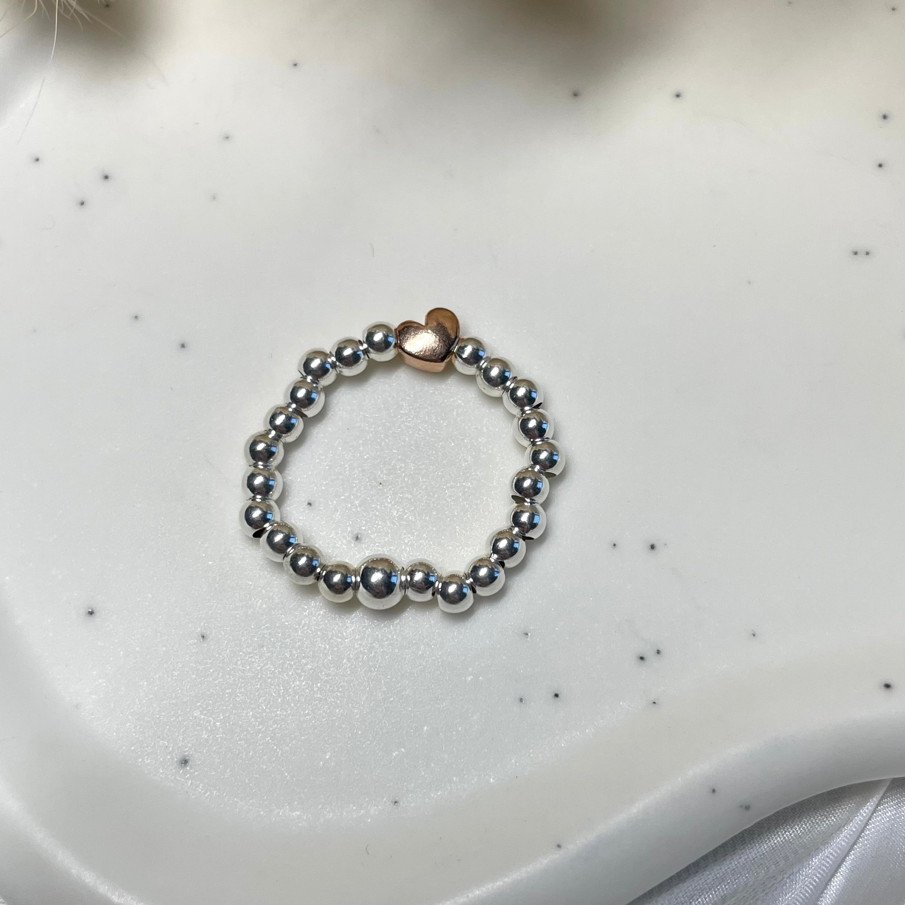 A015 Anello elasticizzato con palline e cuore argentato o rosato
