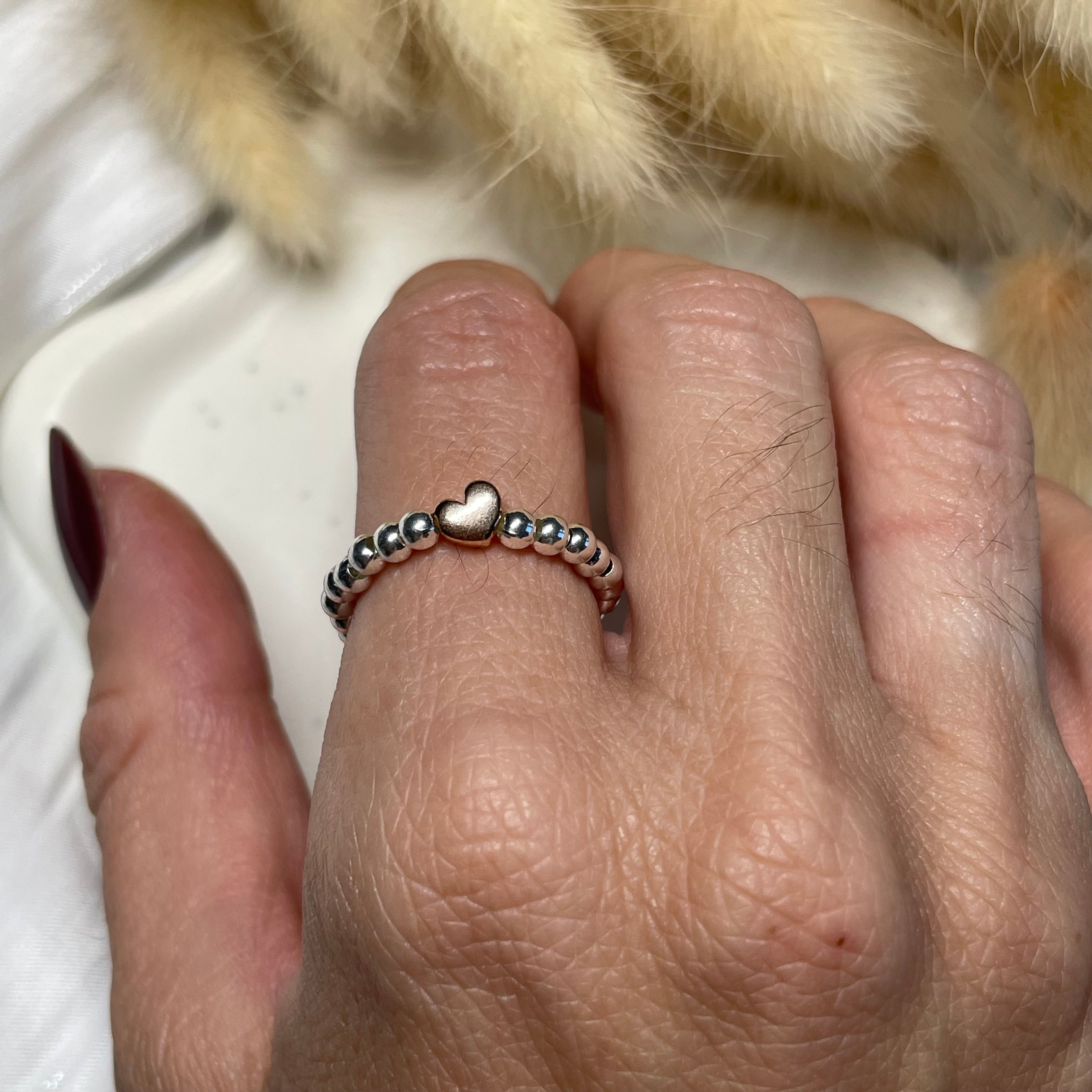 Anello elasticizzato in argento925 con palline e cuore argentato o rosato.