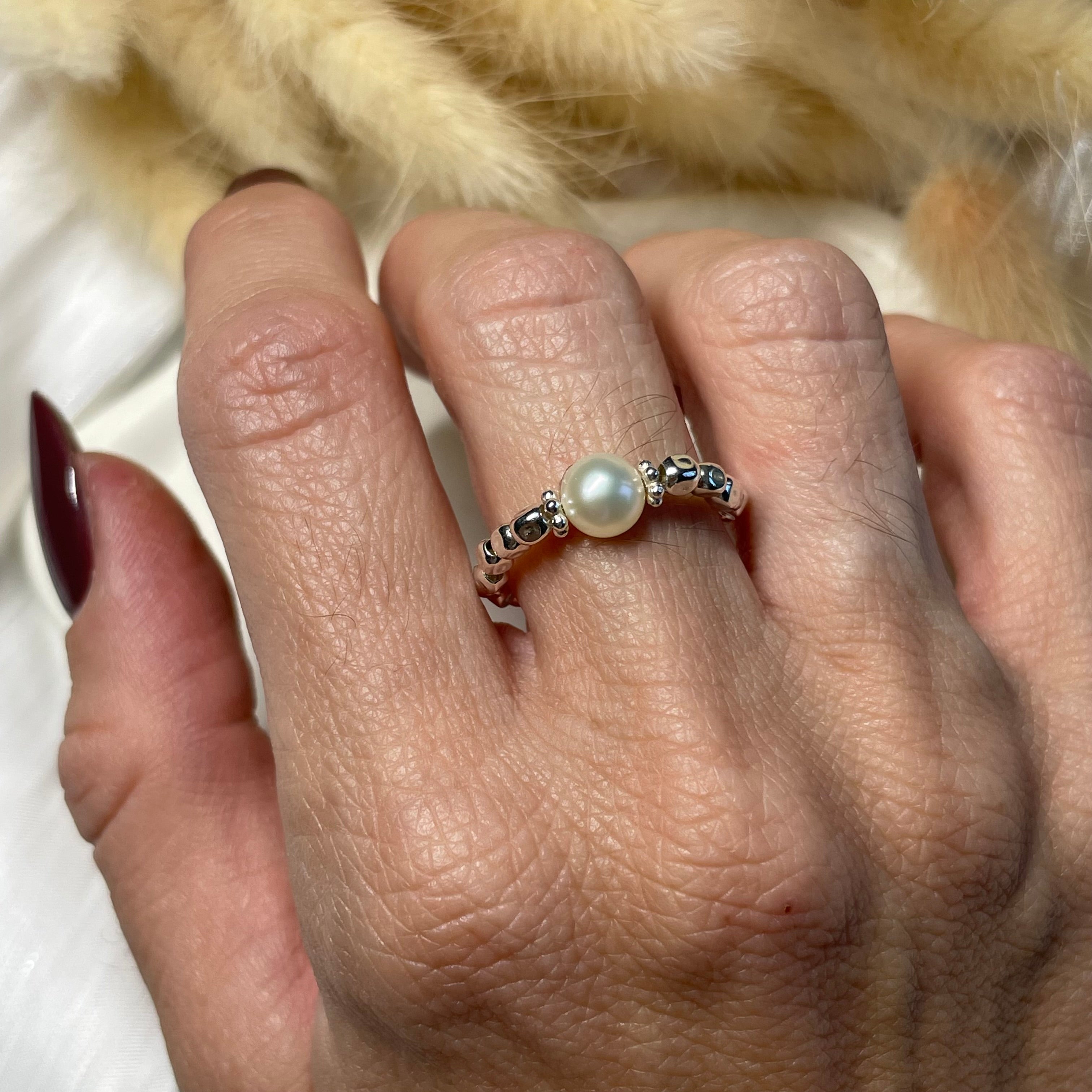 Anello elasticizzato in argento925 pepite mini e perlina di fiume a sassolino.