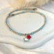 Cavigliera in Argento 925 con filo nautico e palline in pasta di turchese intervallate da rondelle con passante stella marina (incluso nel prezzo).