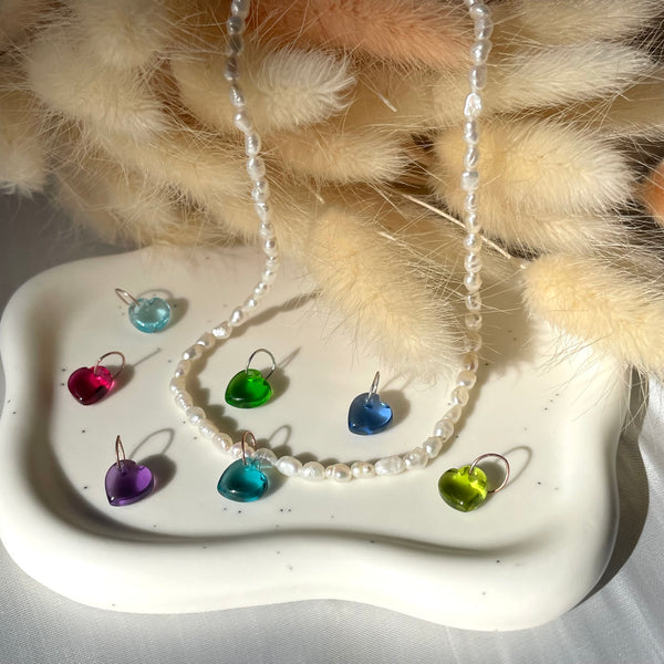CL103 Collana perle risine di fiume con volendo cuore colorato