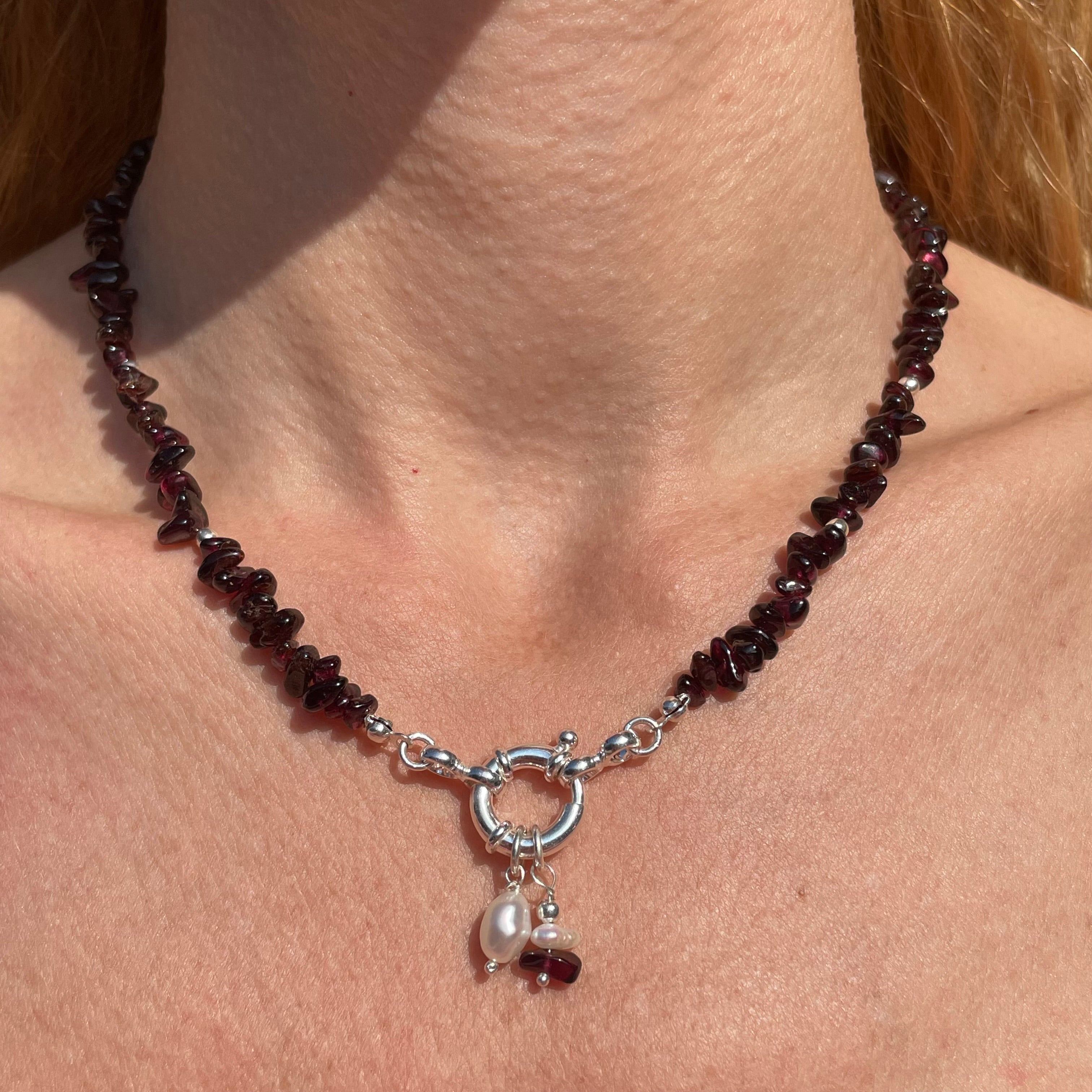 CL109 Collana di pietra granato con moschettone a tipologia a scelta per inserire i ciondoli