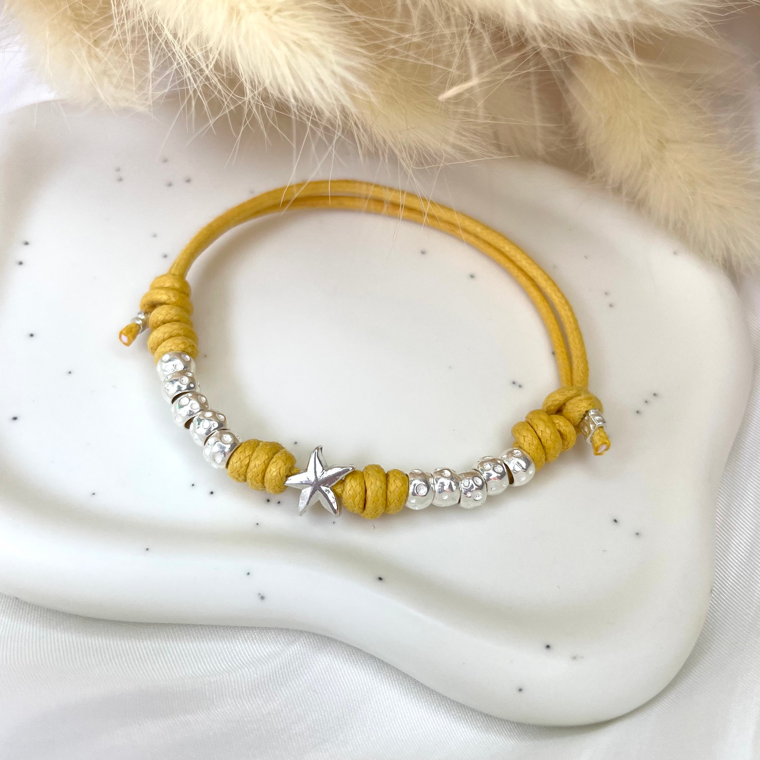 Bracciale in argento925 con 4 nodi di cordino cerato, 10 granelli nuovi + ciondolo a scelta da aggiungere.