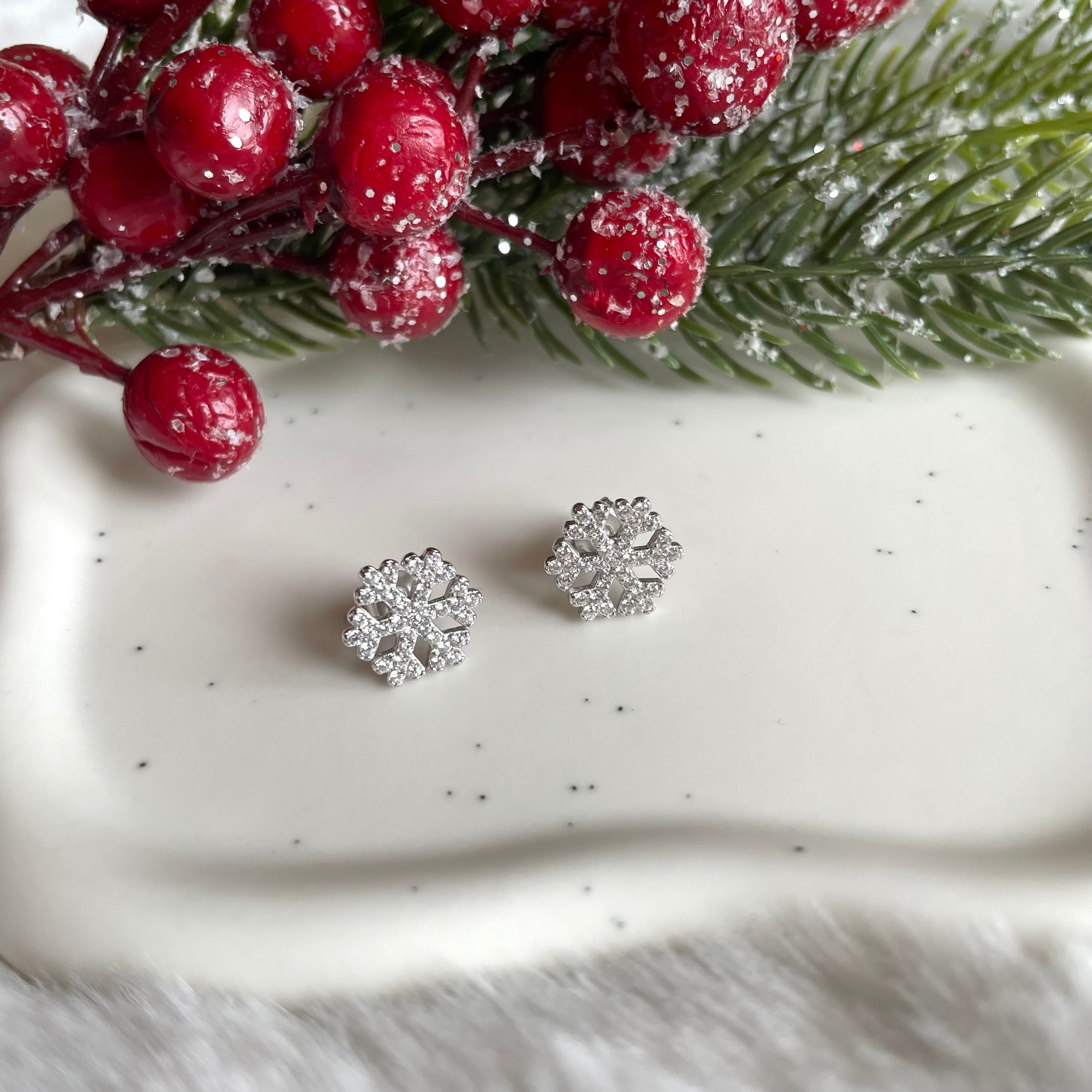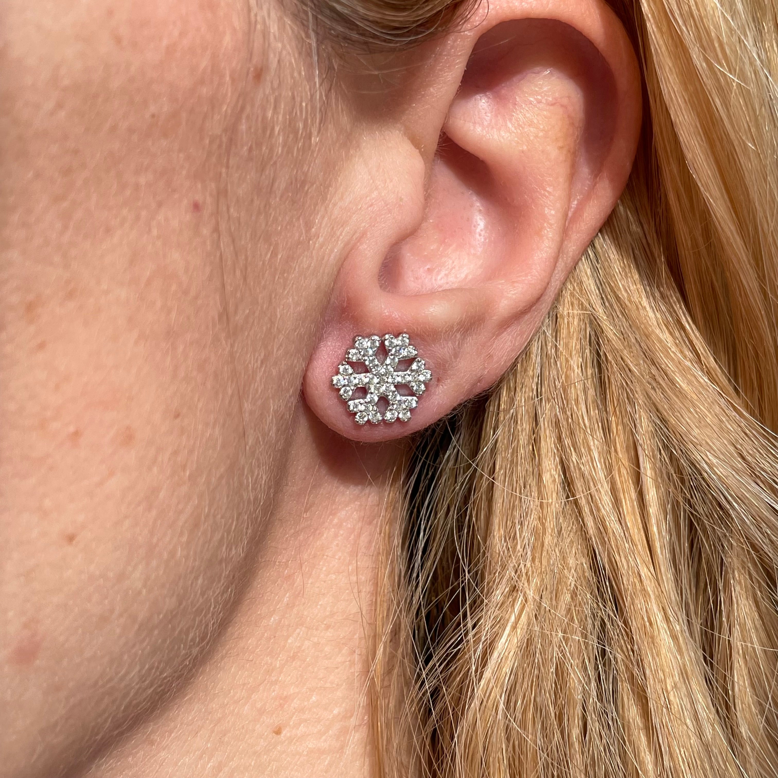 1 paio di orecchini a lobo in argento925 rodiato a forma di fiocco di neve con zirconi.