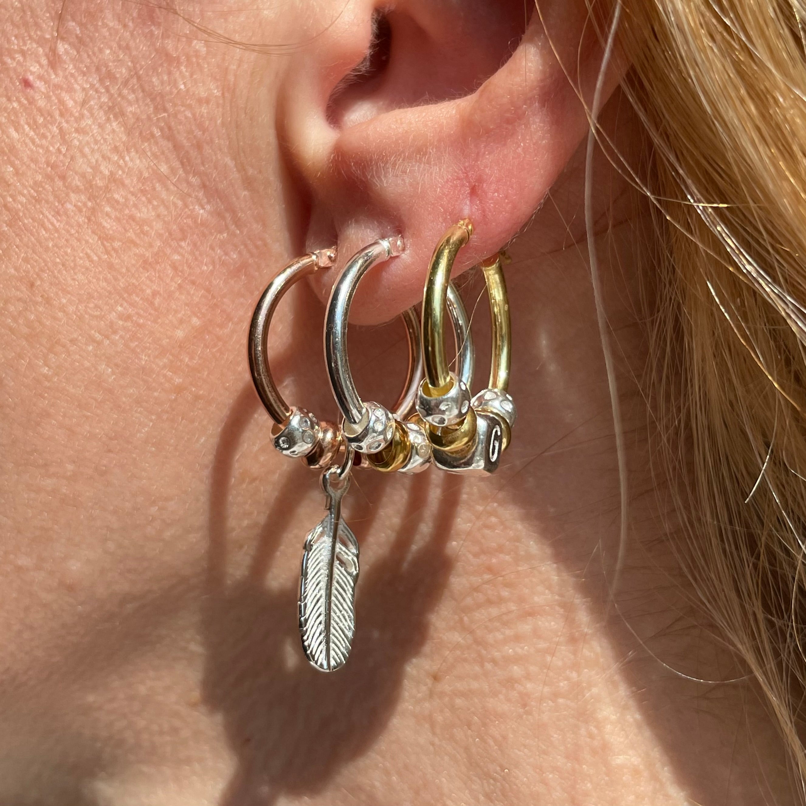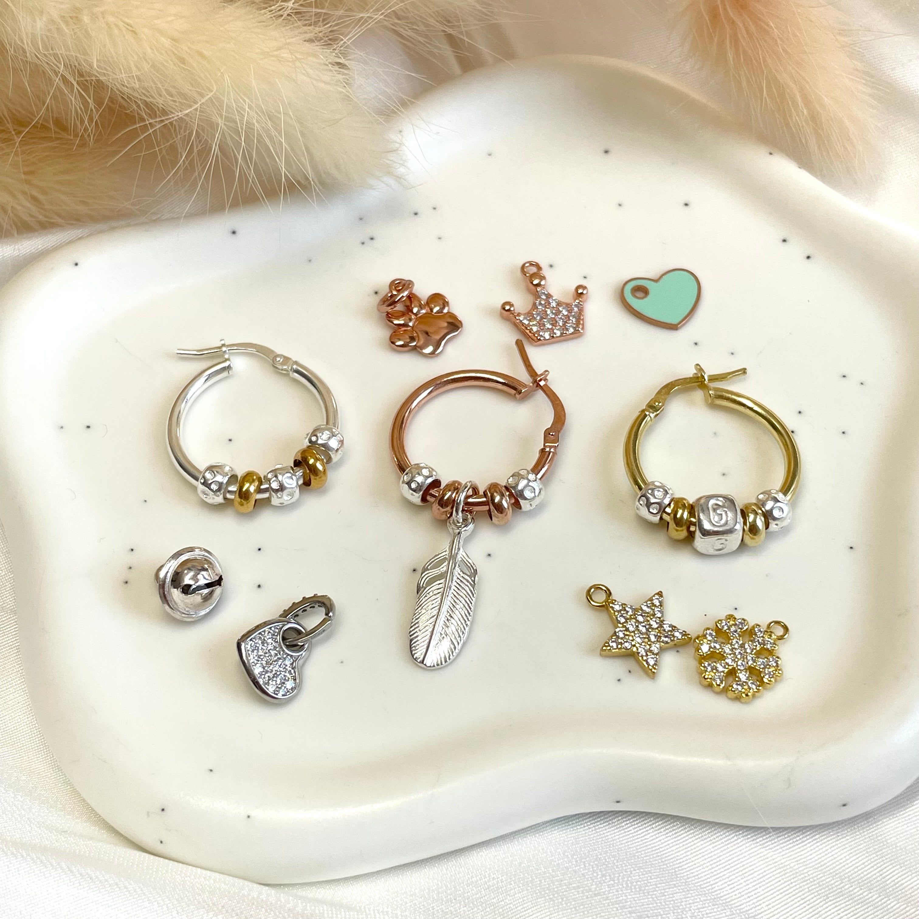 Orecchino,anella, cerchietto con elemento centrale personalizzabile in Argento925.