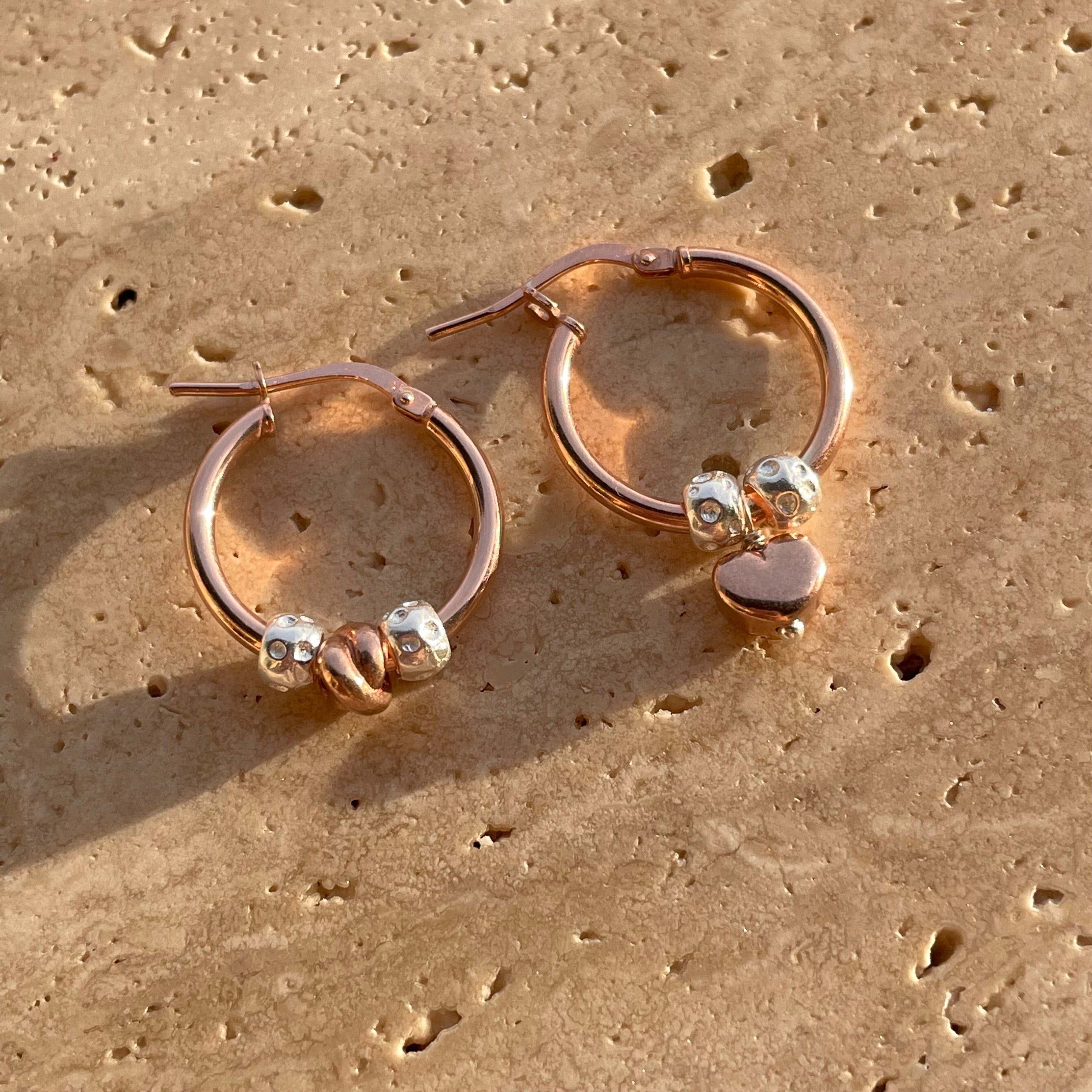 O005 Orecchini anelle con cuore bombato o nodo intreccio rosati