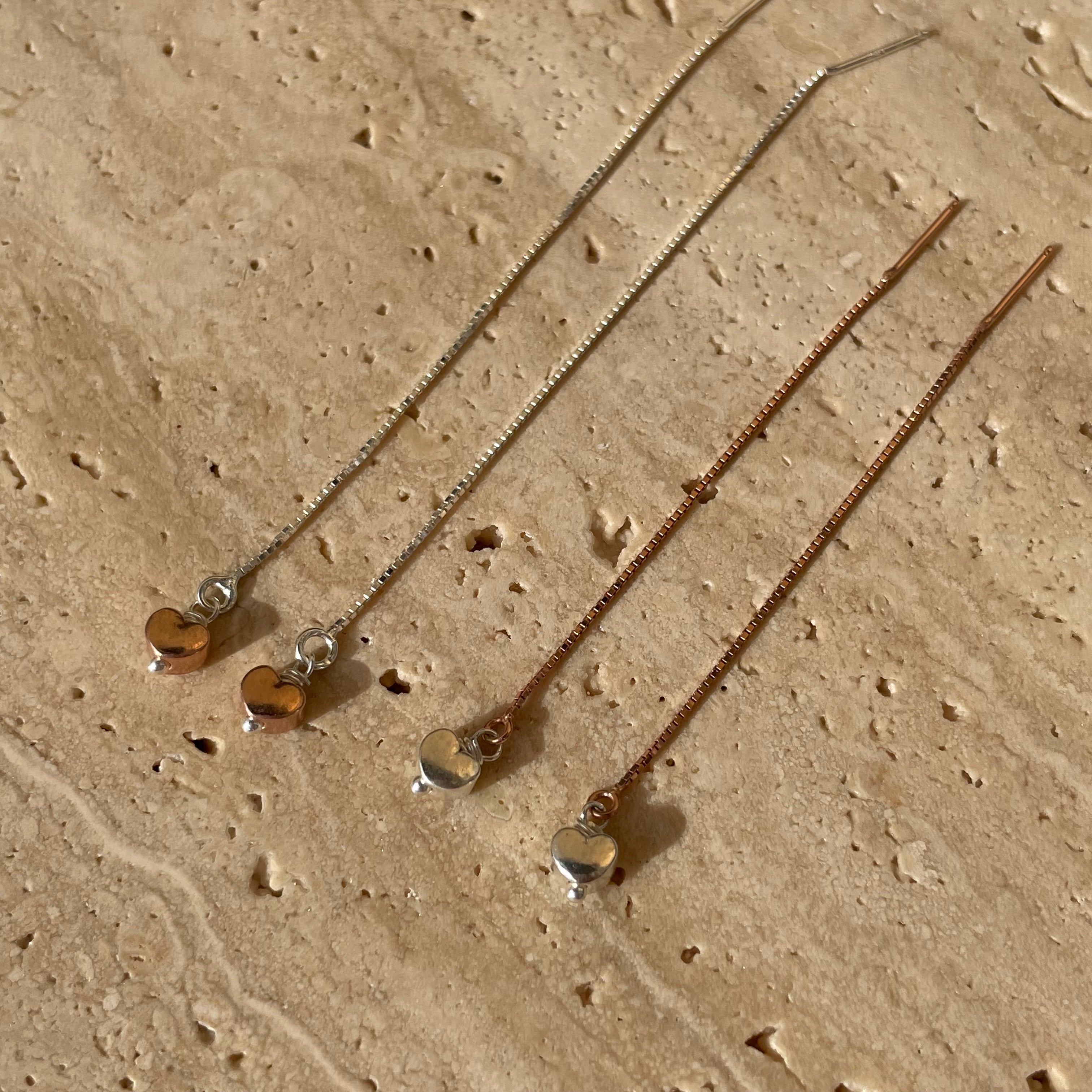 Orecchini pendenti in Argento925 con cuore bombato rosato e catenella argentata oppure cuore bombato argentato e catenella rosata. Il prezzo si riferisce al paio.