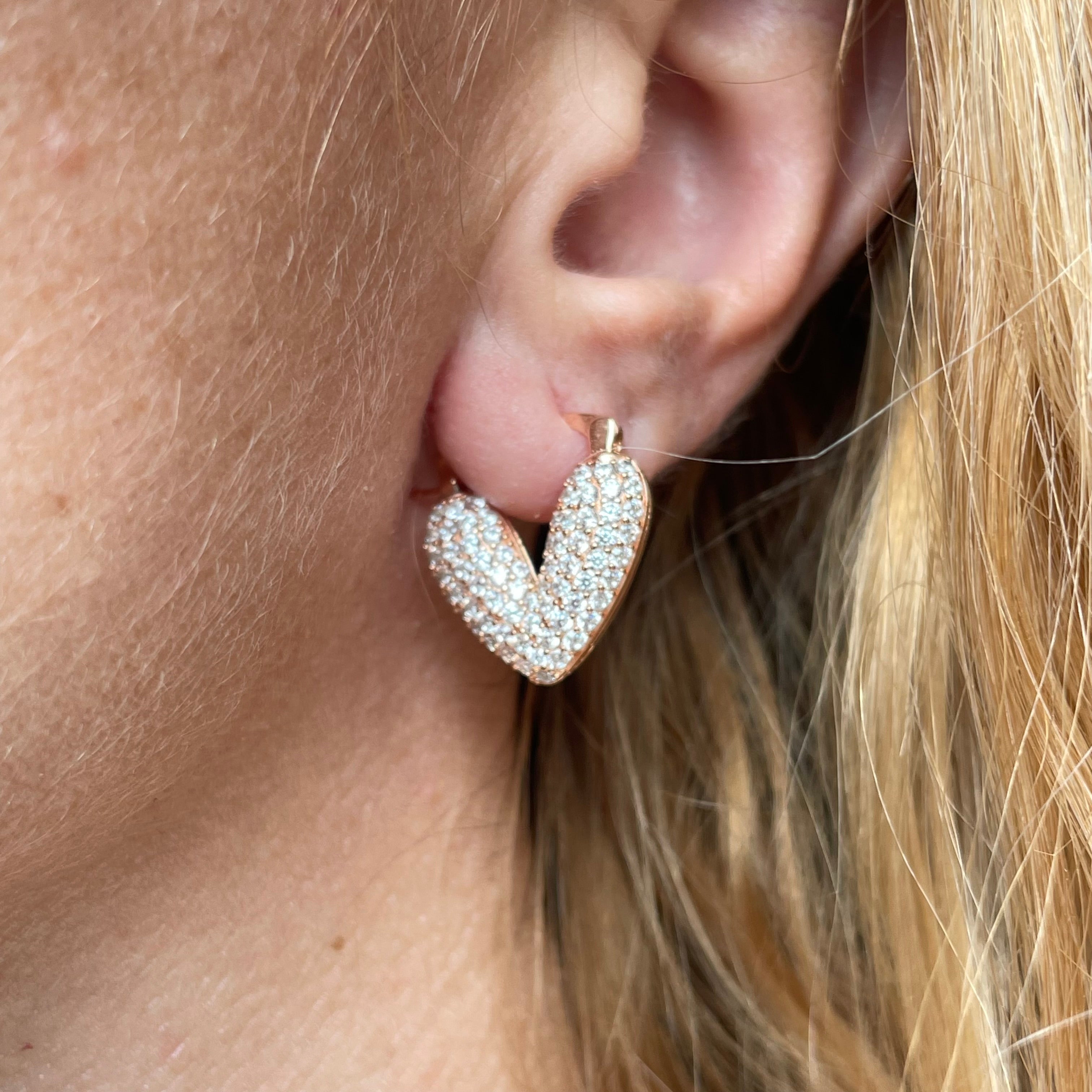 O011 Orecchini con cuore argentato o rosato con zirconi